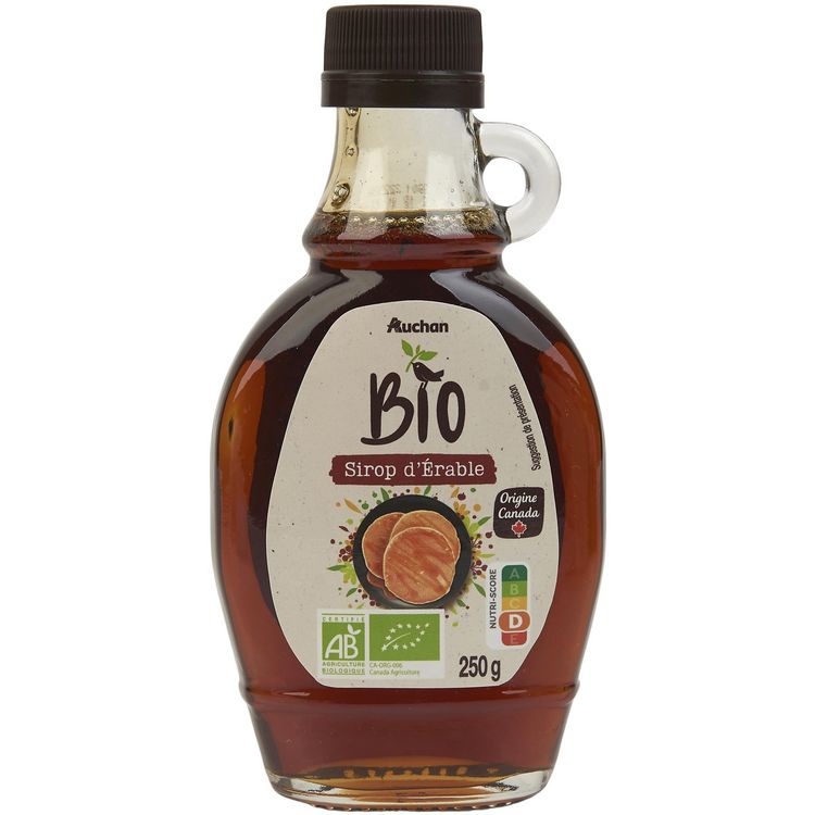 Ce sirop d'érable biologique est produit et conditionné au Canada. D'une belle couleur ambrée, il est idéal pour accompagner gaufres et crêpes ou pour verser sur des fruits. Il peut également être incorporé aux desserts et préparations sucrées.