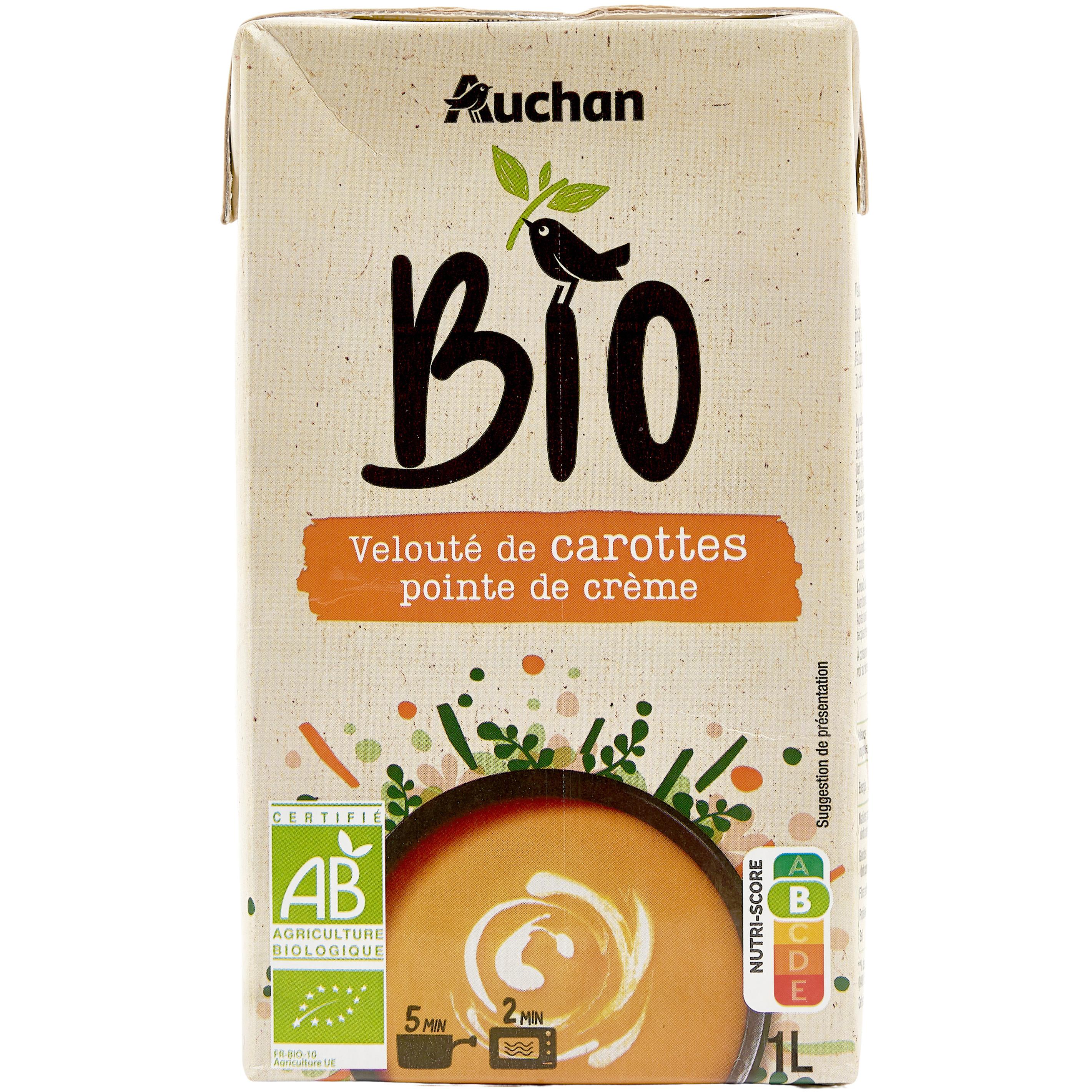 Velouté de carottes et pointe de crème, issu de l'agriculture biologique, prêt à consommer