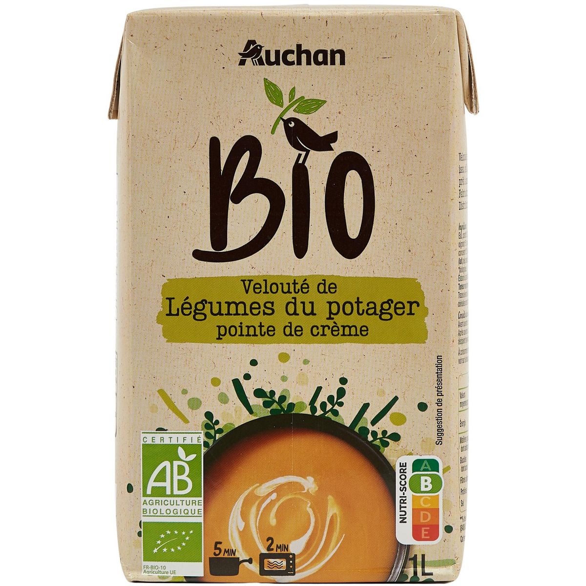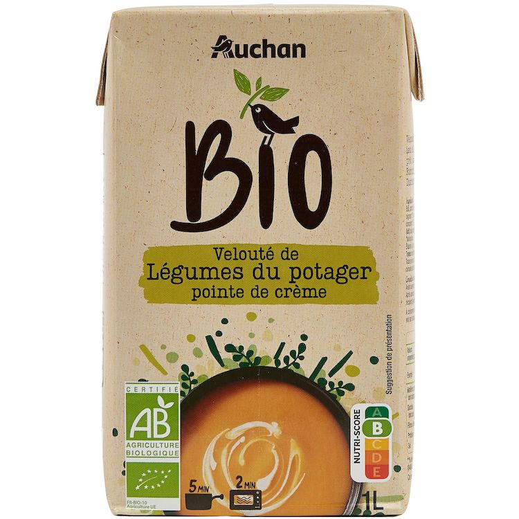 Velouté de légumes et crème, issu de l'agriculture biologique, prêt à consommer
