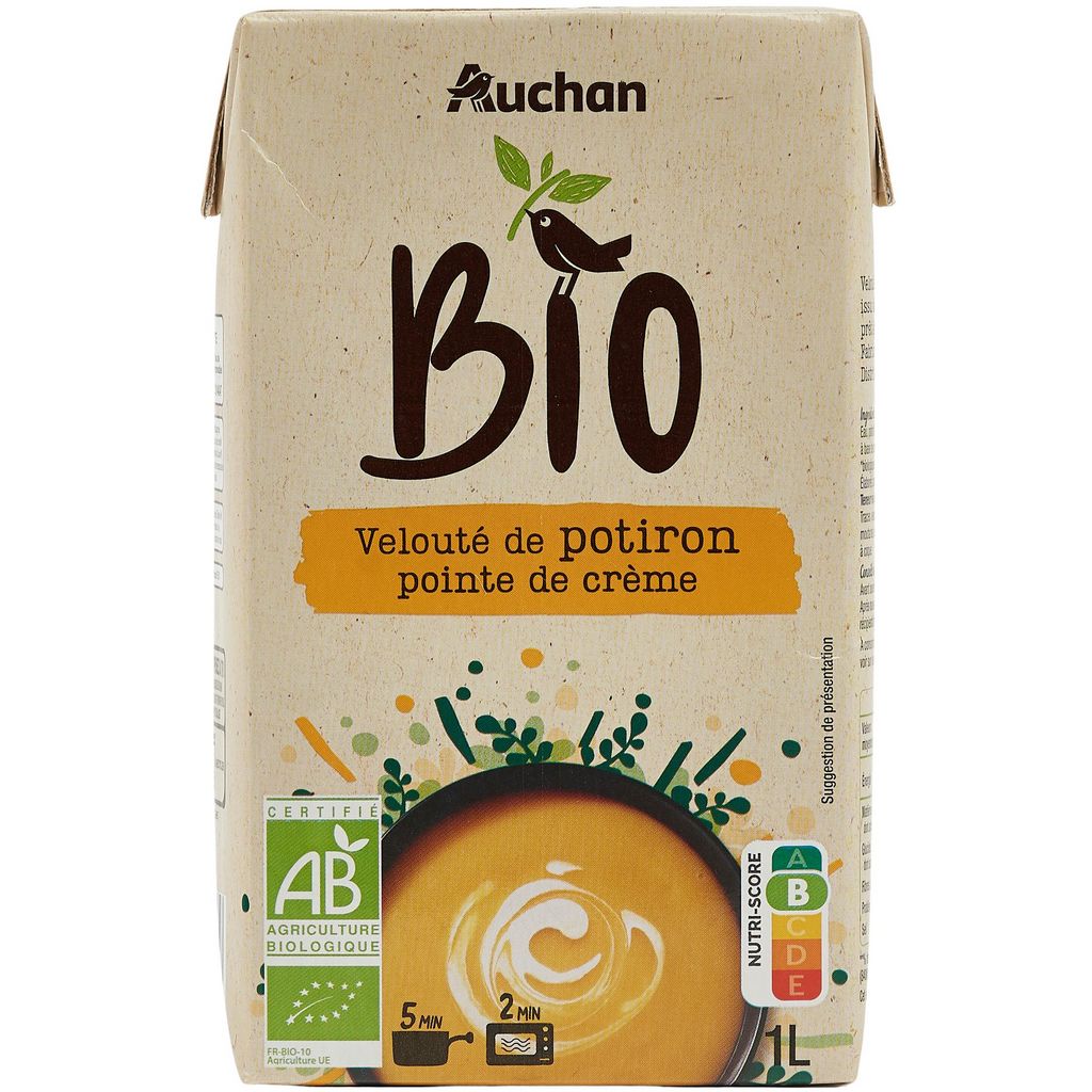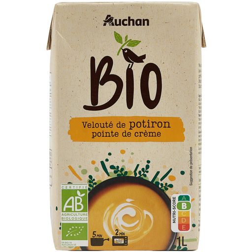 Velouté de potiron et crème, issu de l'agriculture biologique, prêt à consommer