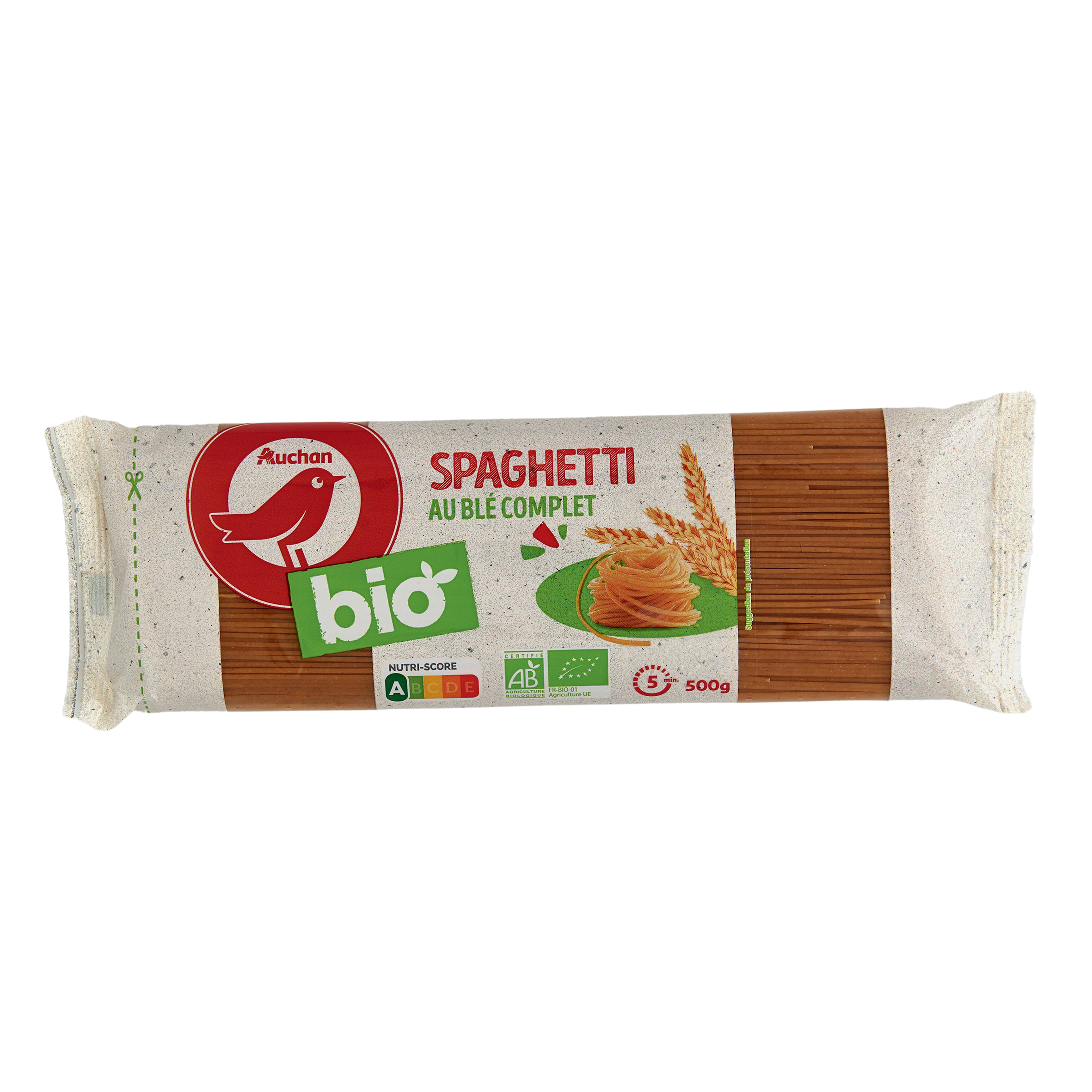 Je ne sais pas quels sont les arguments mis en avant pour faire acheter aux gens des pâtes au blé complet. Peut importe. Le fait qu'il y ai écrit "complet" et "bio" sur le packaging me donne l'impression de manger sainement et de gagner, ainsi, quelques années d'espérance de vie. Merci Auchan.