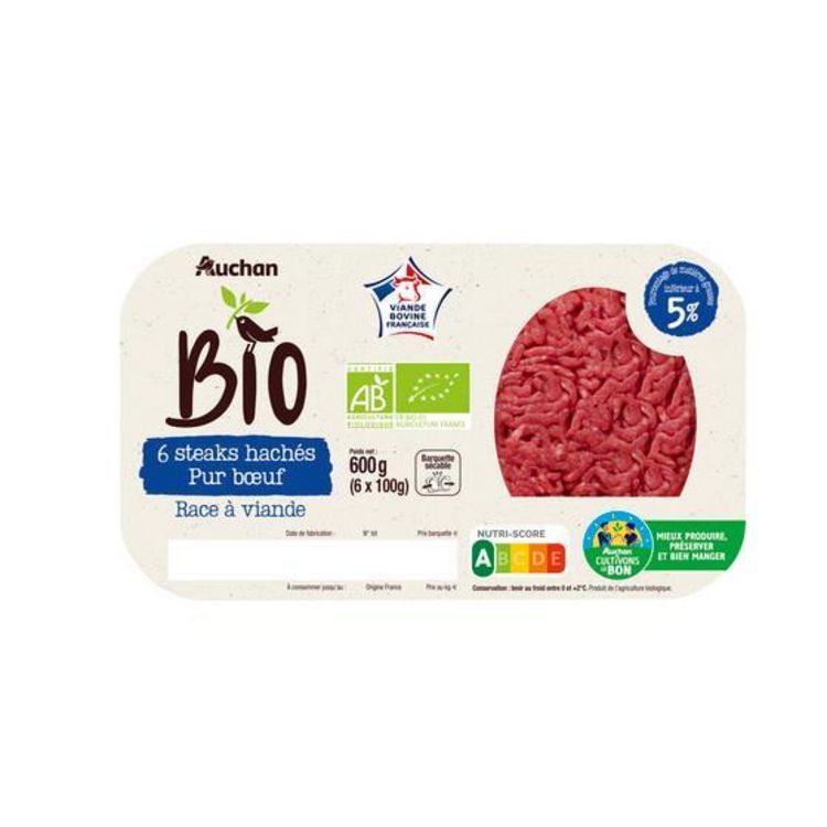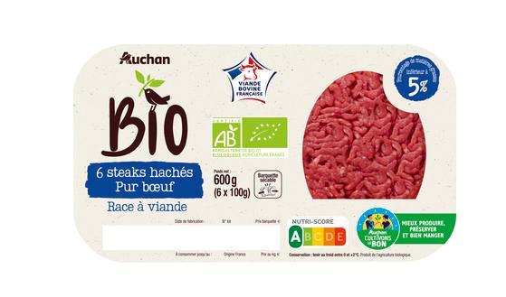 6 steaks hachés pur bœuf issus de l'agriculture biologique.
