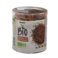 Ingrédients : Farine de BLÉ*, sel 3.1%, huile de tournesol*, extrait de malt d'ORGE*, levure (Saccharomyces cerevisiae), correcteur d'acidité: hydroxyde de sodium. * biologique Traces éventuelles de graines de sésame. Ces sticks et bretzels sont fabriqués en Alsace à partir de farine deblé origine UE.