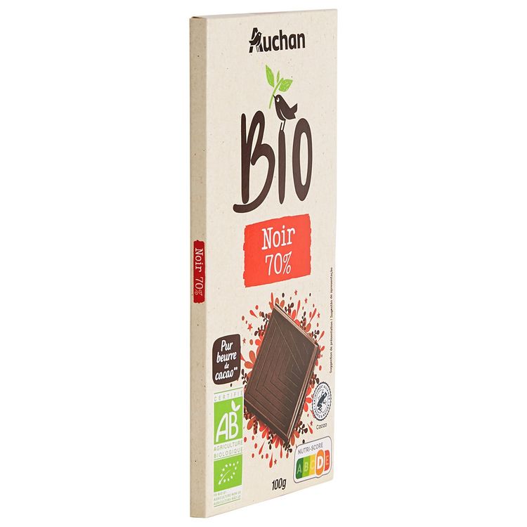 Chocolat noir 70% de cacao issu de l'agriculture biologique.