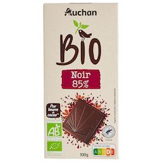 Chocolat noir 85% de cacao issu de l'agriculture biologique. Pur beurre de cacao.