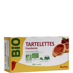 Farine de blé* (contient gluten ) , sucre de canne*, sucre mi-blanc de canne*, purée de framboise* 8.8%, beurre concentré*(contient lait ), oeufs *, huile de colza*, purée de pomme*, sel, poudres à lever : carbonates de sodium, phosphates de calcium, acidifiant : acide citrique, arôme naturel, gélifiant : pectines, correcteur d'acidité : carbonates de potassium, jus concentré de sureau*. *Issus de l'agriculture biologique Traces éventuelles de soja et fruits à coque.