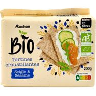 Produit de panification croustillante en tranches, au seigle et aux graines de sésame, issu de l'agriculture biologique