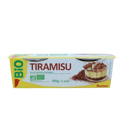 dessert biologique au mascarpone, à la sauce au café et décor au cacaoFabrication certifiée par Bioagricert Srl IT-BIO-007. Distribution certifiée par Ecocert FR-BIO-01.