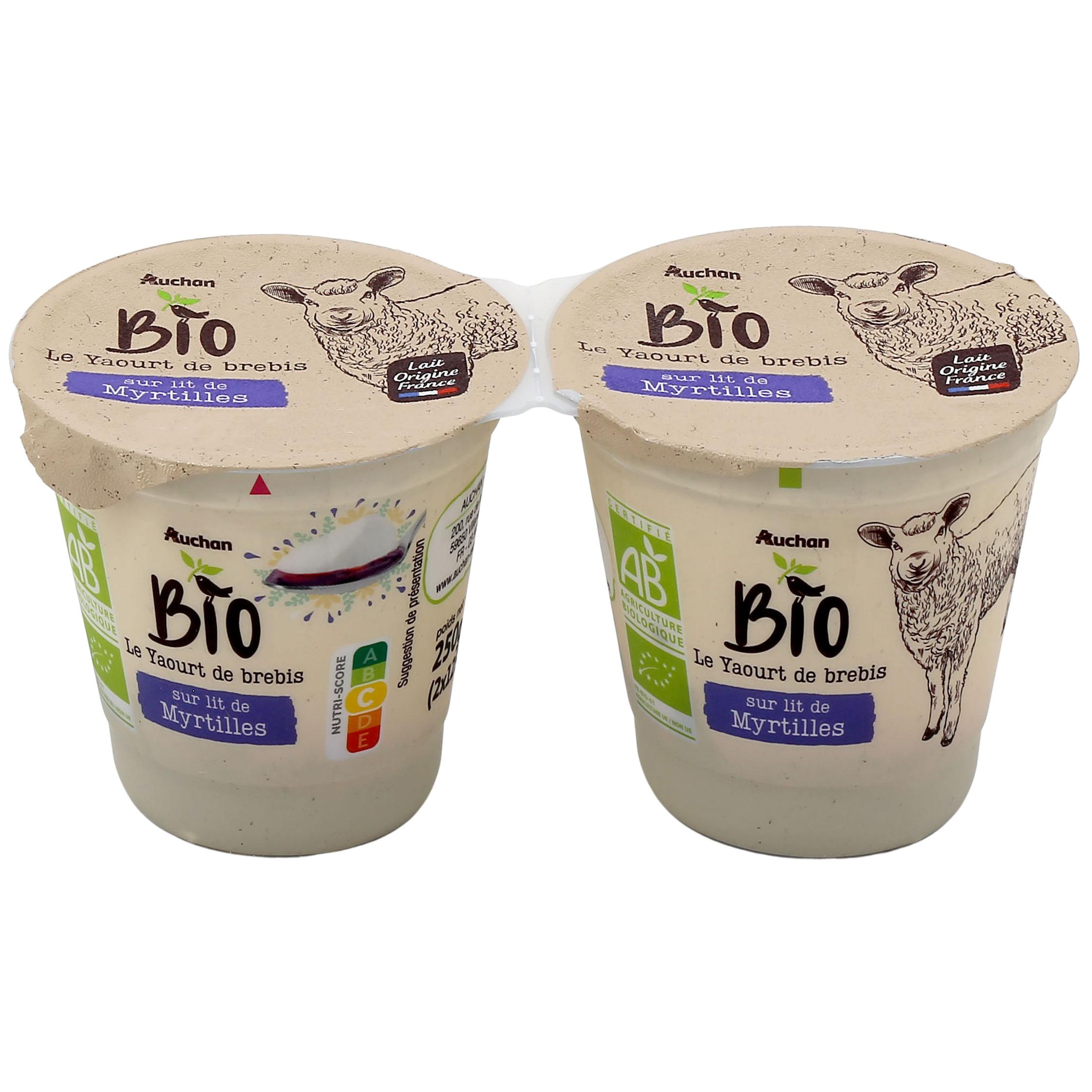 Yaourt au lait de brebis sur une préparation de myrtilles,issu de l'agriculture biologique