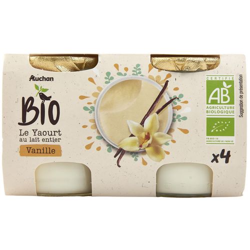 Yaourt au lait entier pasteurisé sucré à la vanille, issu de l'agriculture biologique