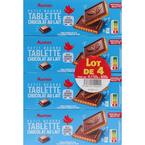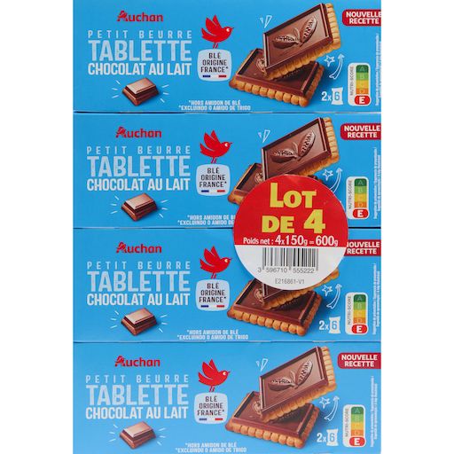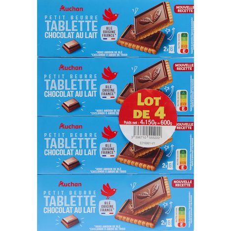 Craquez pour le croustillant des AUCHAN PETIT BEURRE TABLETTE CHOCOLAT LAIT 150G, un pur moment de gourmandise !