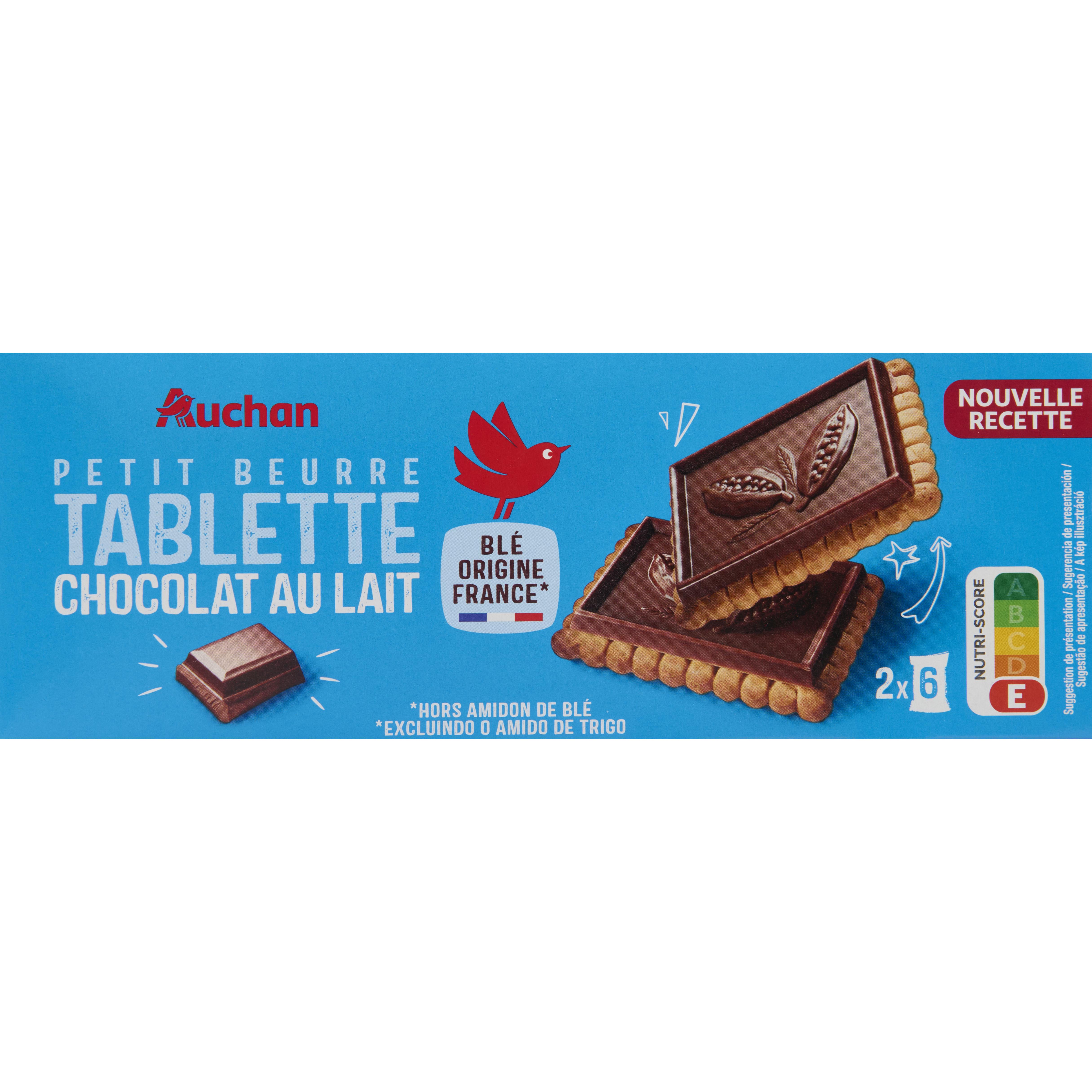 Craquez pour le croustillant des AUCHAN PETIT BEURRE TABLETTE CHOCOLAT LAIT 150G, un pur moment de gourmandise !