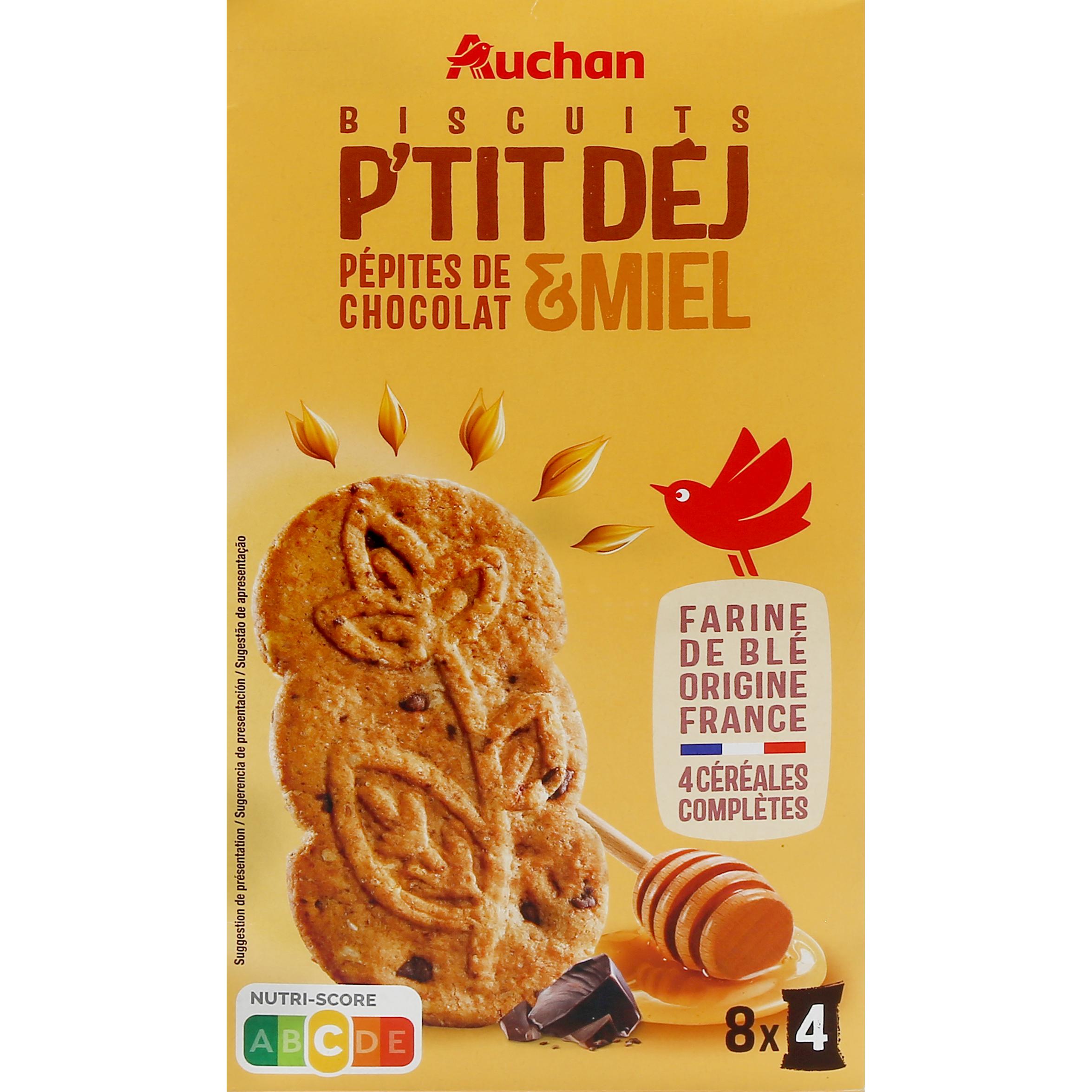 Paquet de biscuits petits déjeuners Auchan aux pépites de chocolat