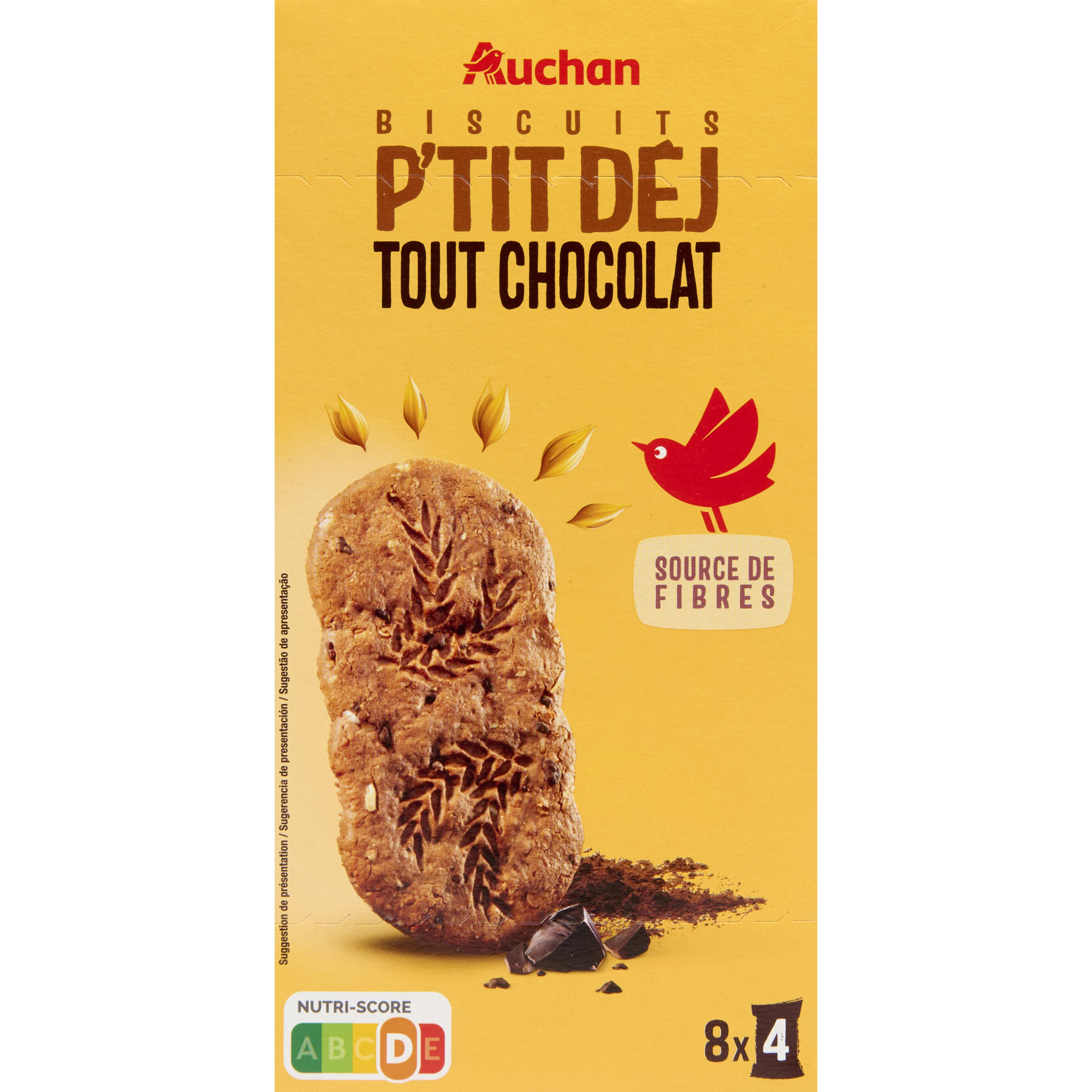 Craquez pour les biscuits Auchan Petit Déjeuner Tout Chocolat, une explosion de saveurs chocolatées avec des pépites de chocolat fondantes, le tout dans un format familial de 400g. Offrez-vous un réveil gourmand et intense avec ces biscuits parfaits pour un petit déjeuner 100% chocolat.