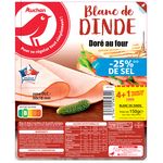 Blanc de dinde reconstitué, cuit de qualité supérieure, traité en salaison, doré au four, réduit en sel de 25%**** réduit de 25% par rapport à la moyenne des blancs de dinde reconstitués, cuits traités en salaison qualité supérieure du marché