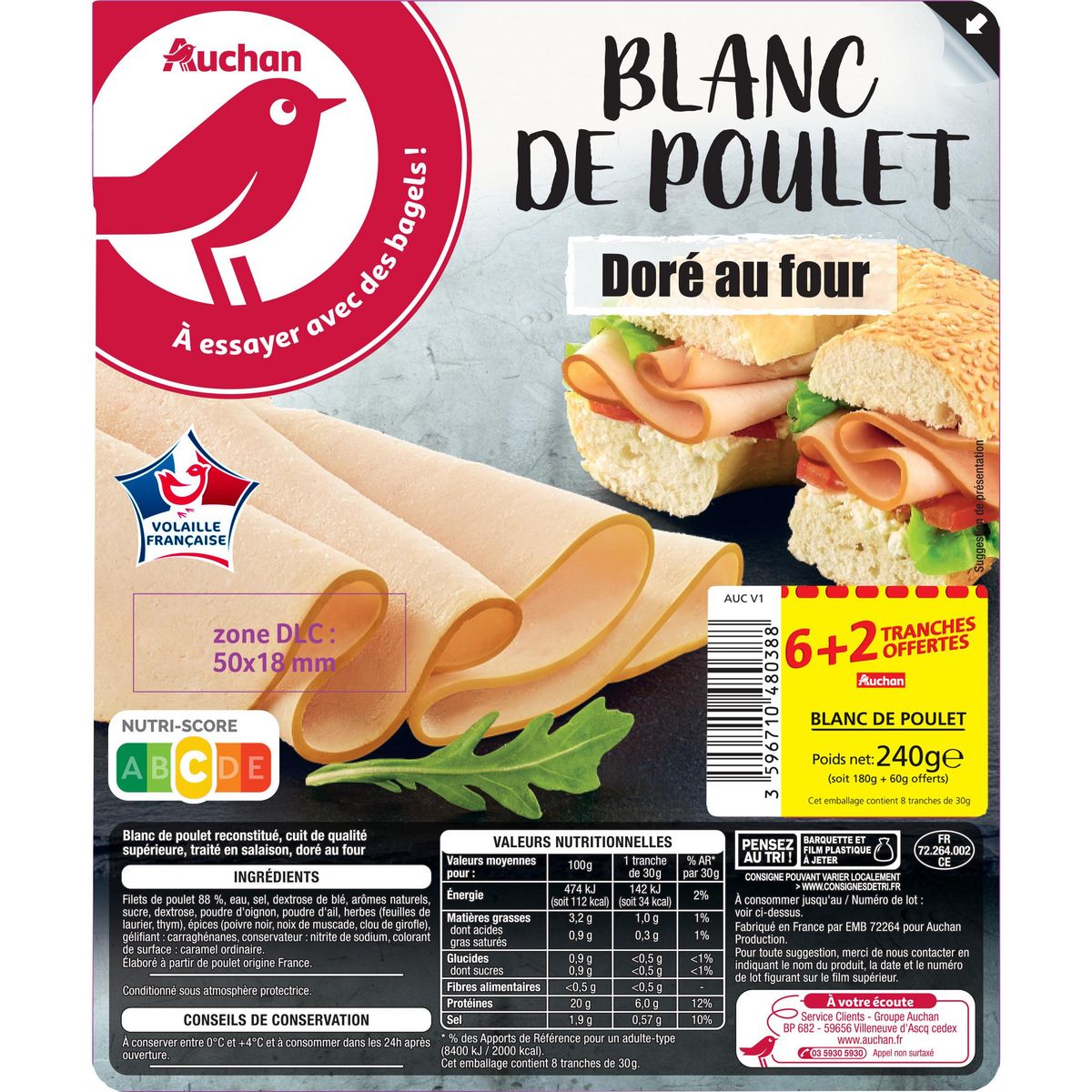 AUCHAN BLANC POULET 6 TRANCHES + 2 OFFERTES 240G