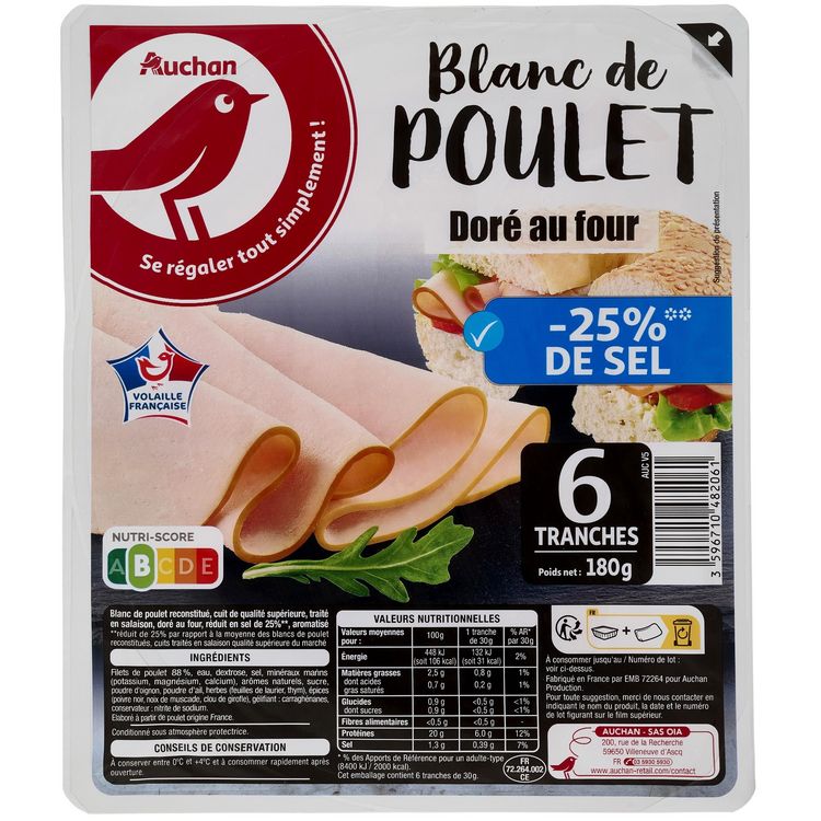 Un blanc de poulet français avec un taux de sel réduit, c'est mieux pour la santé !!