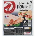 Blanc de poulet reconstitué, cuit de qualité supérieure, traité en salaison, doré au four, aromatisé