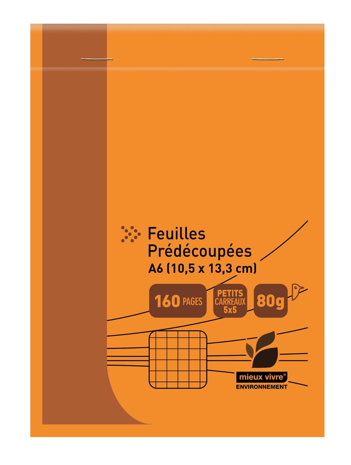 Feuilles prédécoupées 10.5 x 14.8 cm. 160 pages. 80g/m²