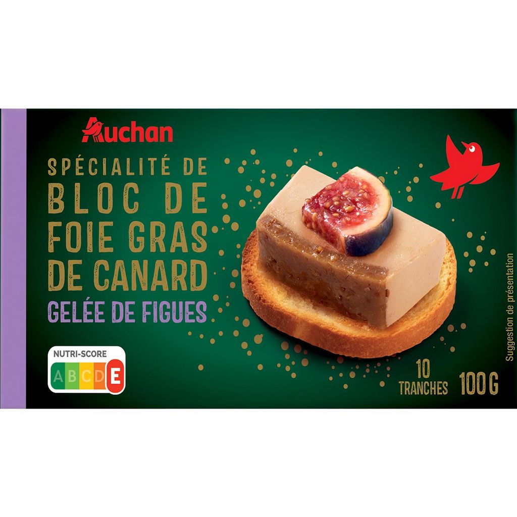 Bonjour, Merci d'avoir pris le temps de partager votre avis concernant notre produit AUCHAN Bloc de foie gras de canard et gelée de figues 10 parts 100g. Nous sommes désolés d'apprendre que vous n'avez pas trouvé le goût du foie gras ni celui de la figue à la hauteur de vos attentes. Nous espérons avoir l'occasion de vous satisfaire davantage à l'avenir. Bien cordialement,