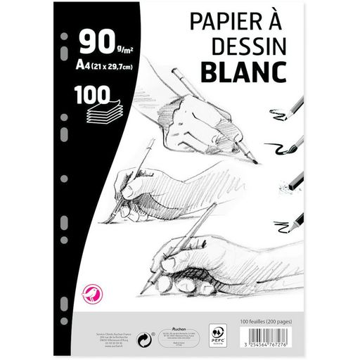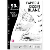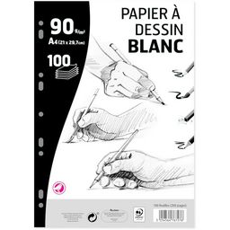 Bloc feuilles simples à dessin 100 feuilles A4 blanc uni perforées