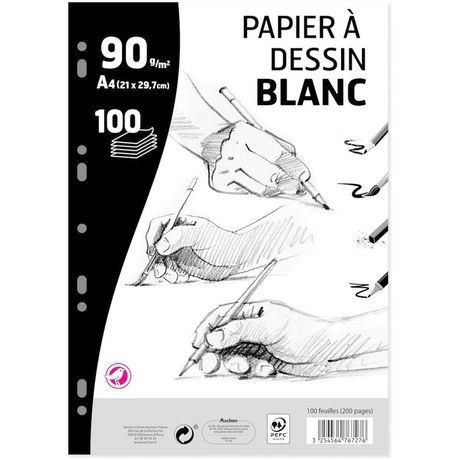 Incontournable de la rentrée des classes, le bloc feuilles simples à dessin 100 feuilles A4 blanc uni perforées