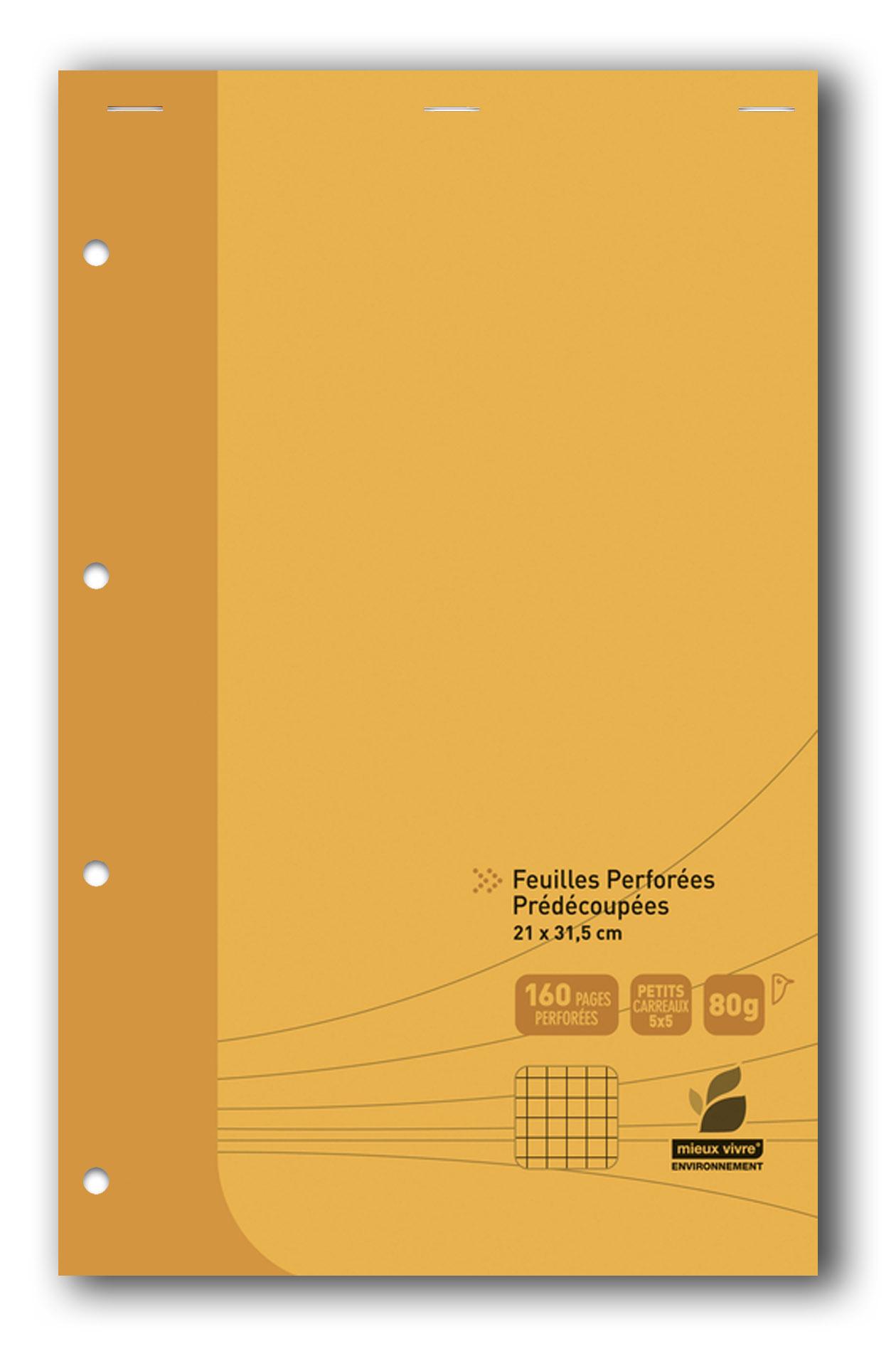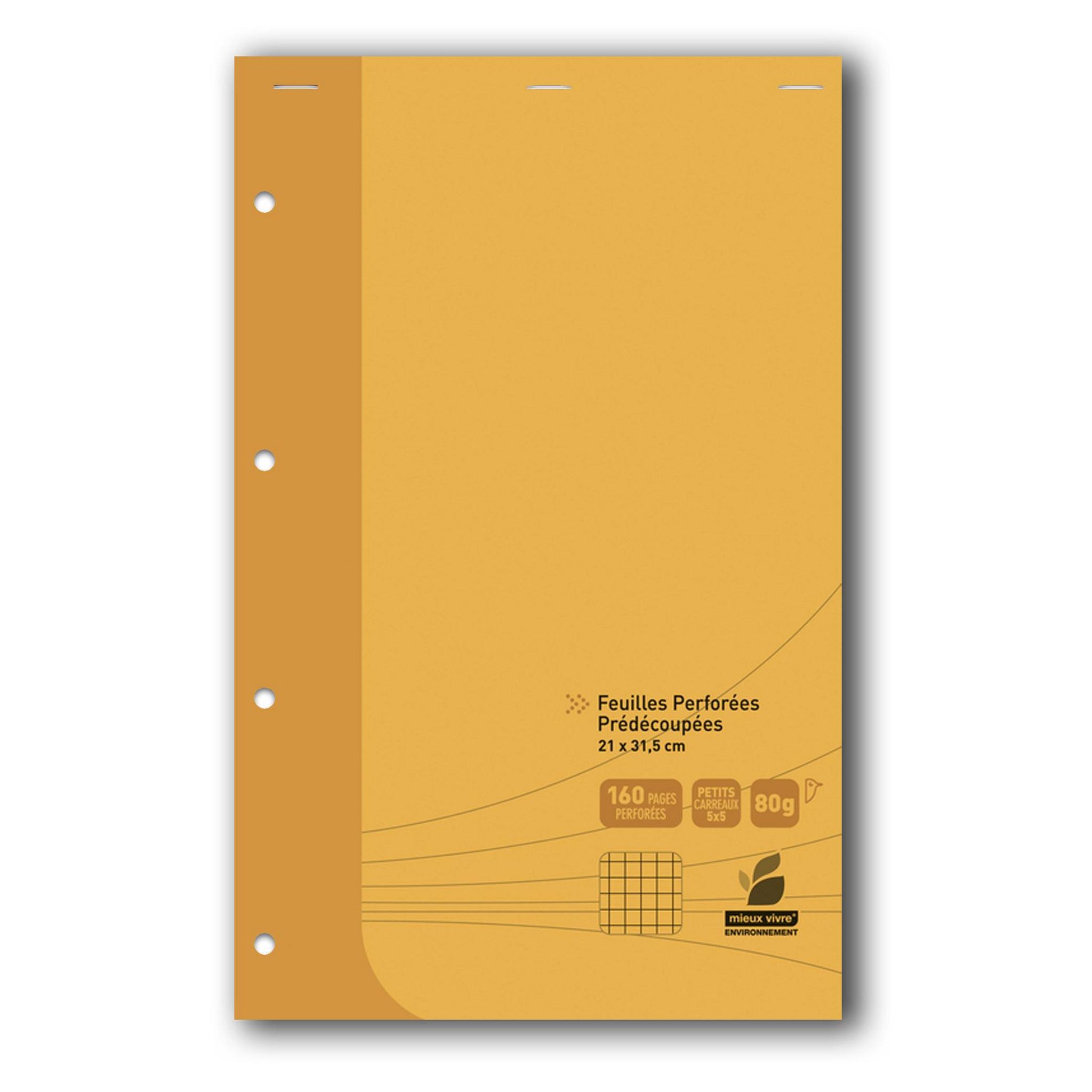 Feuilles perforées prédécoupées 21 x 31.5 cm. Petits carreaux 5x5. 80g