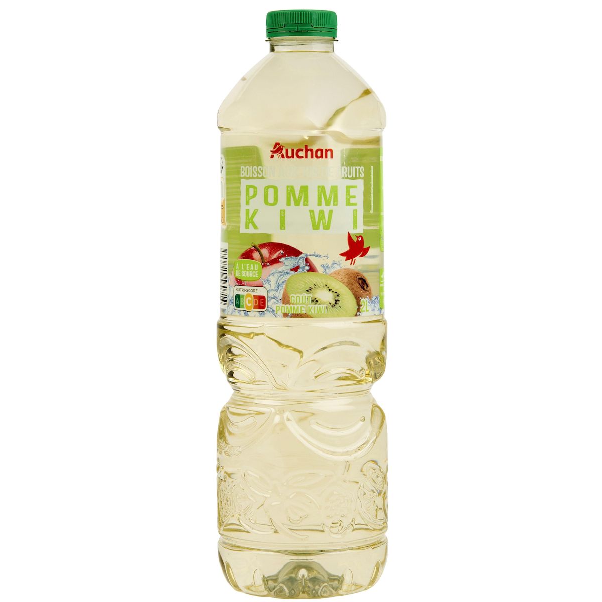 Ingrédients : Eau de source 84,8%, jus de fruits à base de concentrés 12% (pomme 10%, kiwi 2%), sucre, acidifiant : acide citrique, arômes naturels, antioxydant : acide ascorbique.
