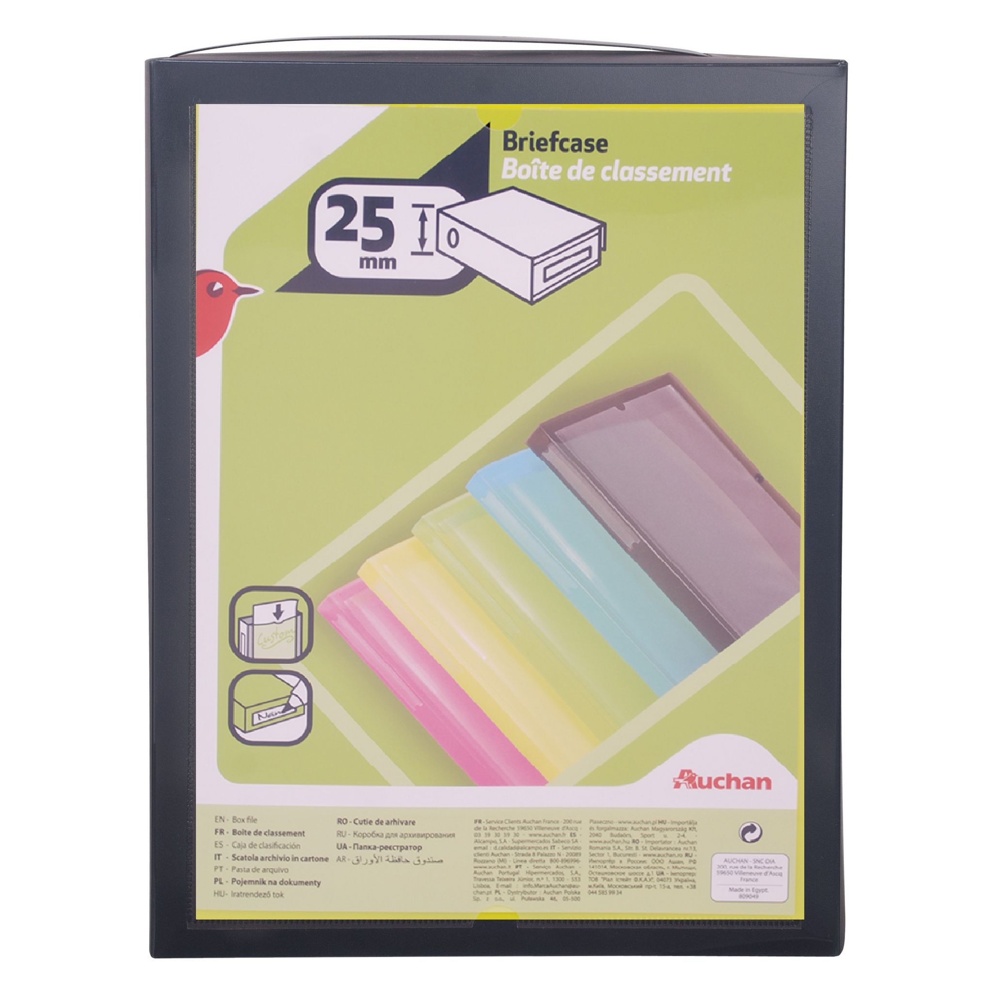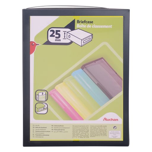 Avec son dos de 25 mm, cette boîte de classement nomade est fonctionnelle pour classer, archiver ou transporter les documents du quotidien en cours, à la maison ou en milieu professionnel. Son format permet de ranger tous les documents et dossiers jusqu’au format A4. Ce porte-documents garantit rigidité et performance à chaque utilisation et se décline dans une gamme de couleurs tendance. Fabriquée dans un polypropylène de qualité, cette boîte de classement se démarque par une fermeture par bouton pression pour protéger efficacement le contenu et d’une pochette transparente en couverture personnalisable pour présenter, mettre en valeur ou identifier plus facilement le contenu. Un porte-étiquette soudé permet d’indexer ou d’identifier plus facilement le contenu de la boîte. Coloris assortis.