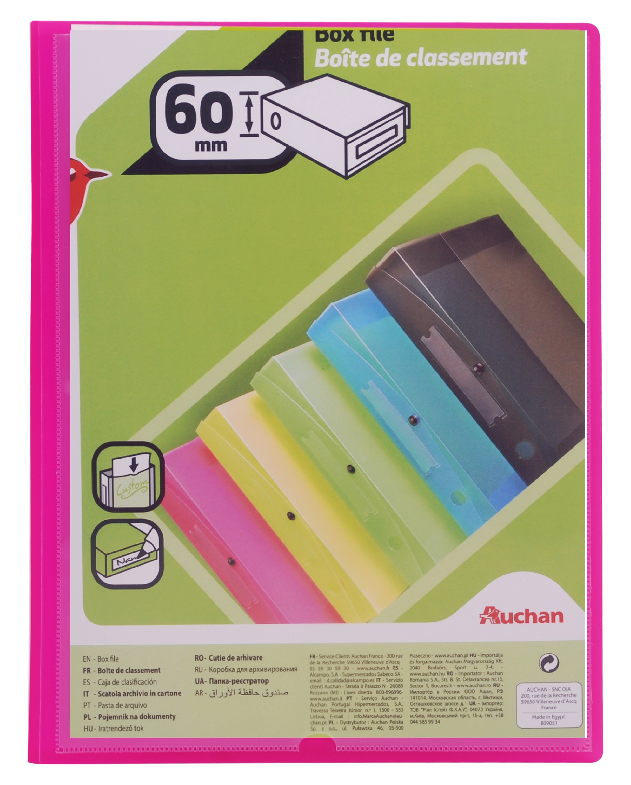 Boite de classement dos 60 mm 24x32cm rose