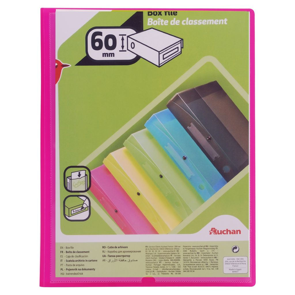 Très pratique, cette boite de classement vous permet d'organiser, trier et stocker vos dossiers tout en les protégeant de la poussière. Avec poignée de transport et fermeture pression. Existe en 7 coloris assortis.
