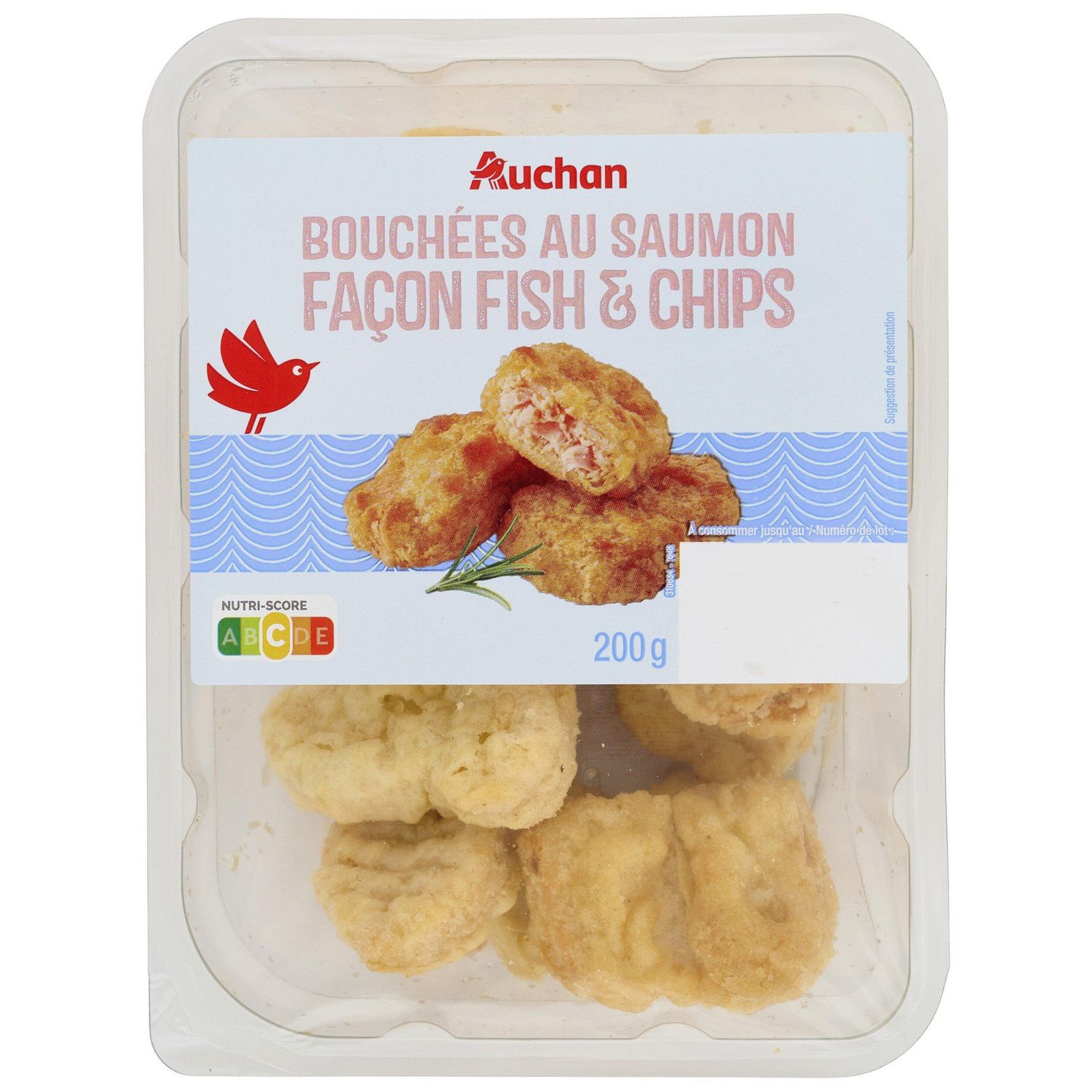 Plongez au cœur de la gastronomie britannique avec les Bouchées au Saumon façon Fish et Chips Auchan (200g) ! Une recette revisitée, gourmande et facile à préparer, pour un repas convivial et savoureux.