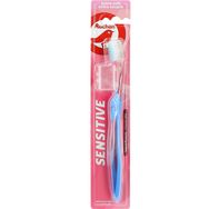 "Sensitive""Extra souple""Nettoie en douceur les dents et les gencives grâce à ses filaments effilés" "Avec protège-tête"