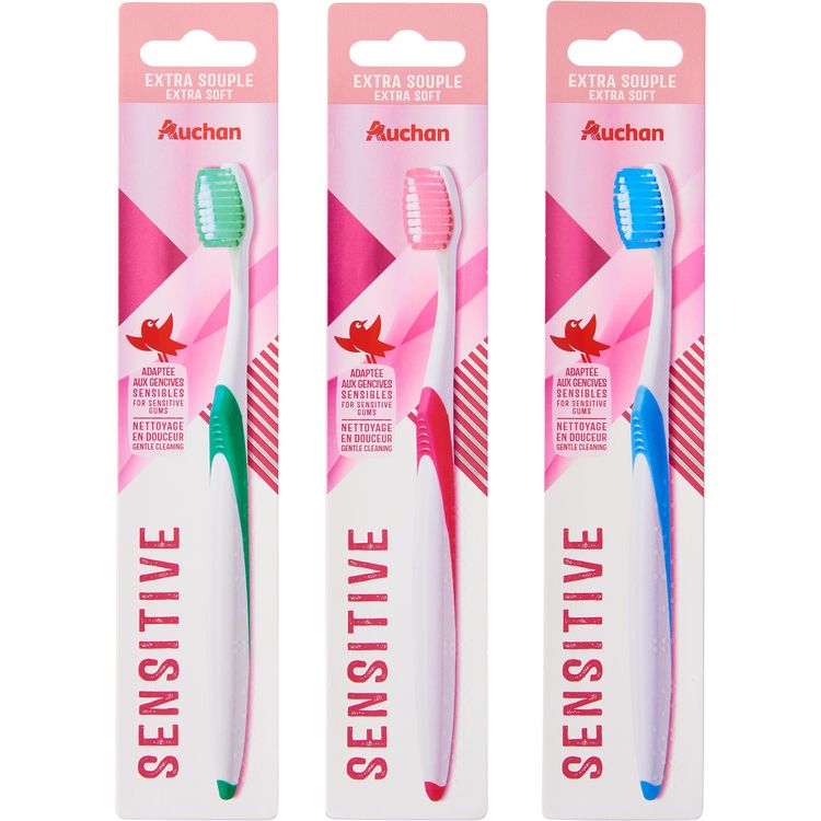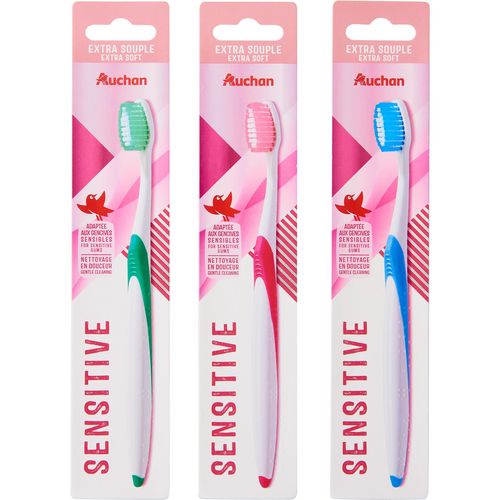 J’avais l’habitude d’acheter les brosses à dents sensitive Auchan qui me convenaient très bien, douces pour mes dents et gencives. Je ne prenais que celles-ci et ils les ont changées pour ce modèle qui est tout simplement horrible ! Les poils sont douloureux pour les gencives, le brossage de dents est affreux. Obligée de trouver une nouvelle marque vers laquelle me tourner car je n’en reprendrai plus JAMAIS! Si vous aviez l’habitude de prendre le modèle précédent, vous serez déçu! Elles ne sont pas extra souples du tout.