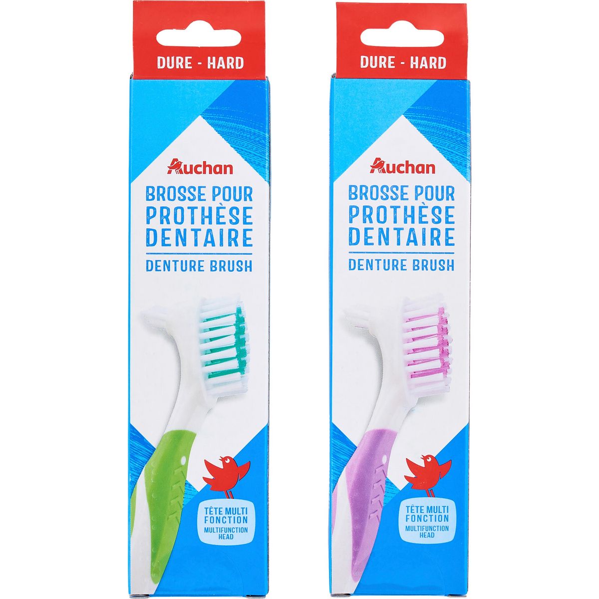 Brosse pour prothèses et appareils dentairesDureTête multifonctionManche ergonomique1 Brosse large pour brossage interne et externe de la prothèse, 1 brosse arrondie pour zones difficiles d'accès