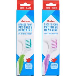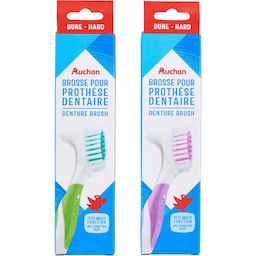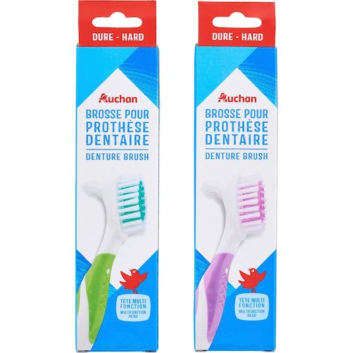 La brosse pour prothèse dentaire AUCHAN vous permet de nettoyer votre prothèse efficacement. Sa tête multifonction et son manche ergonomique rendent son utilisation facile. Les 2 têtes de nettoyage ont deux usages complémentaires : la tête large pour un brossage interne et externe de la prothèse, la tête arrondie pour les zones difficiles d'accès.