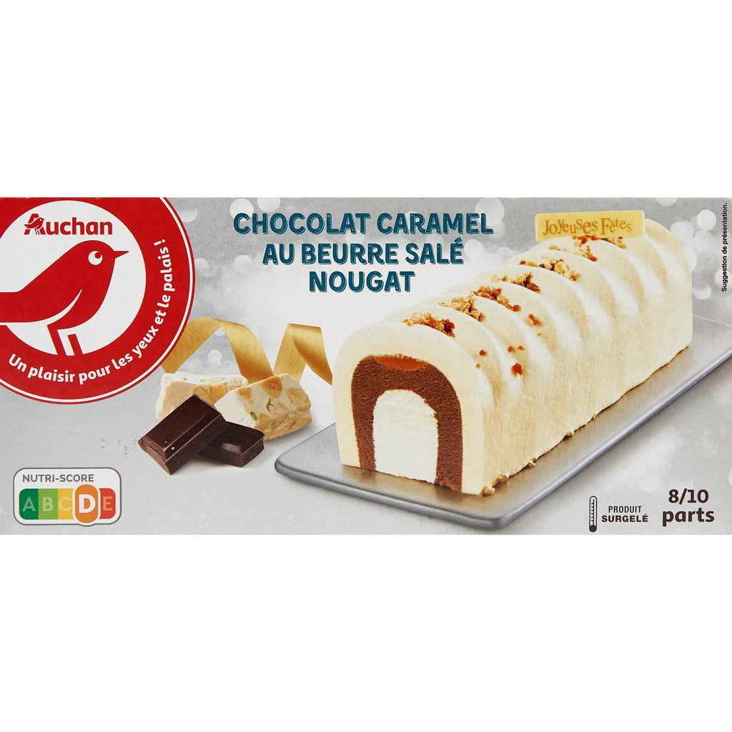 Bonjour, Merci pour votre retour concernant notre Bûche glacée au chocolat, nougat et caramel au beurre salé AUCHAN. Nous sommes désolés d’apprendre que l’équilibre des saveurs n’a pas totalement répondu à vos attentes et que le goût de chocolat a pris le dessus. Nous travaillons constamment à améliorer nos recettes pour offrir une expérience gustative harmonieuse. Votre remarque sera transmise à nos équipes afin d’évaluer les ajustements possibles. Nous espérons que vous nous donnerez une nouvelle chance à l’avenir avec nos autres desserts glacés. Bien cordialement,