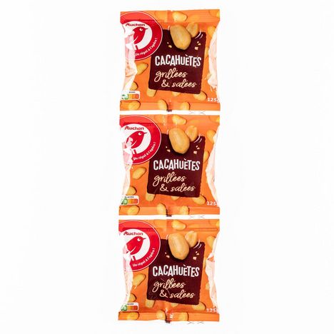 Emballage pratique 3 paquets et cacahuètes goûteuses.