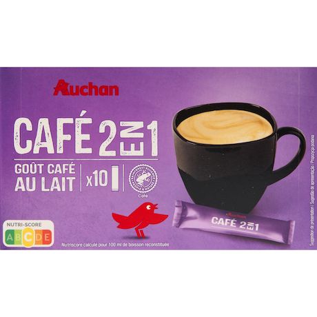 Simplifiez votre pause-café avec les sticks solubles 2 en 1 Auchan. Un mélange parfait de café et de lait, prêt en quelques secondes. Idéal pour une pause rapide et savoureuse !