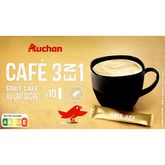 Simplifiez-vous la vie avec le café au lait sucré soluble 3 en 1 Auchan. Chaque stick contient la dose parfaite de café, de lait et de sucre pour une boisson gourmande et équilibrée. Plus besoin de doser, il suffit de verser le contenu du stick dans une tasse d'eau chaude et de savourer. Ce format pratique est idéal pour le bureau, les voyages ou tout simplement pour un café rapide à la maison. Avec 10 sticks par paquet, vous aurez toujours une délicieuse boisson à portée de main.