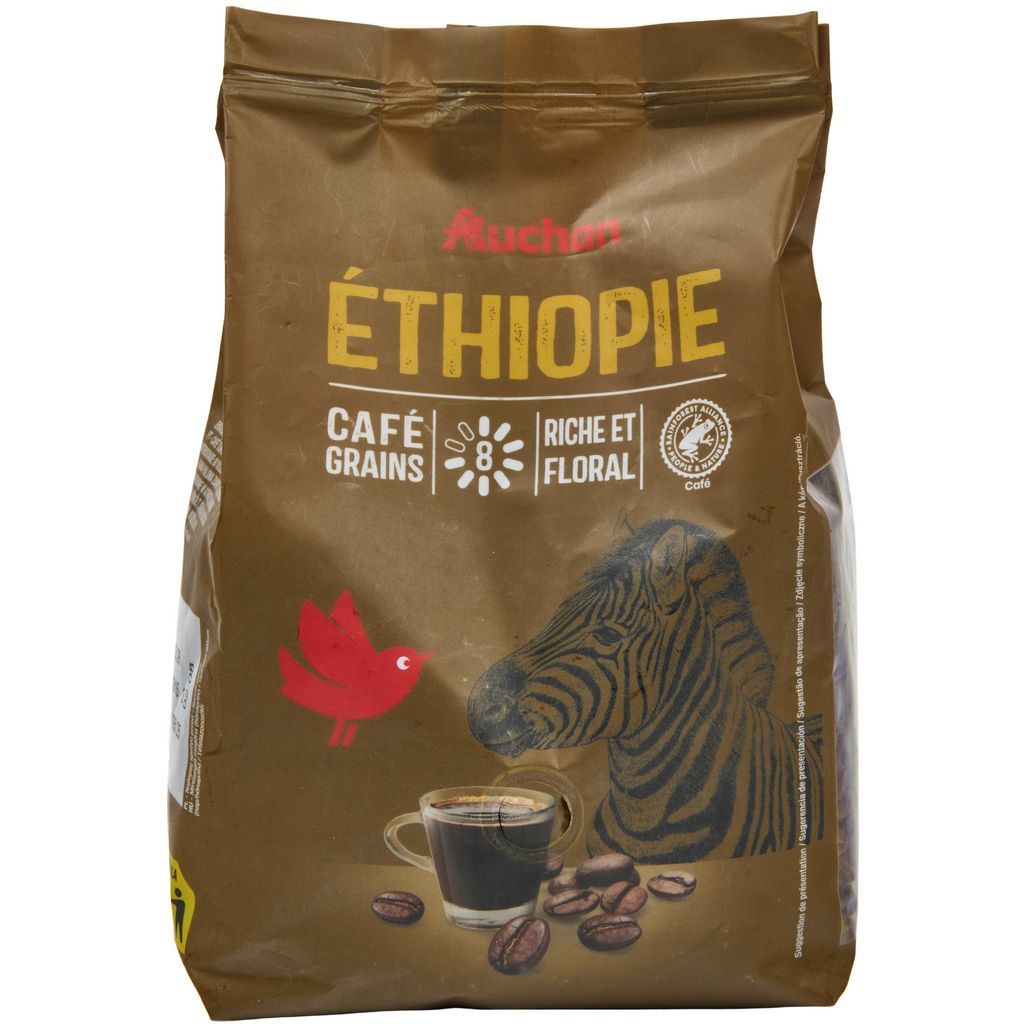 Café d'Ethiopie, torréfié en grains. Intensité 8/10. Conditionné sous atmosphère protectrice.