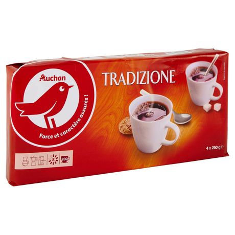 Ce café moulu tradition aux arômes délicats vous offrira un moment d'exception à chaque tasse. Retrouvez le doux parfum du bon café tradition Auchan. Café torréfié moulu. Conditionné sous vide.