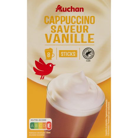 Offrez-vous un moment de douceur avec le cappuccino vanille Auchan en sticks. Un mélange onctueux et savoureux pour une pause gourmande instantanée. Boîte de 8 sticks de 18g, soit 144g.