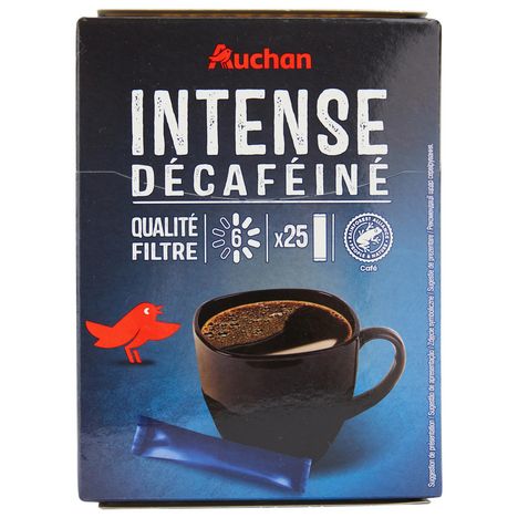 Savourez tout le plaisir d'un café d'intensité 6/10, sans les effets de la caféine, grâce aux sticks décaféinés Auchan. Pratique et délicieux, en boîte de 25 sticks (50g).