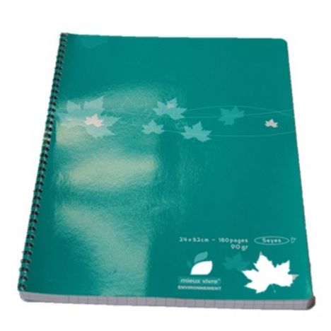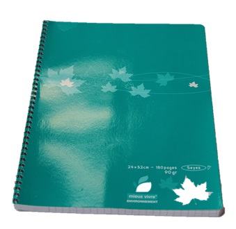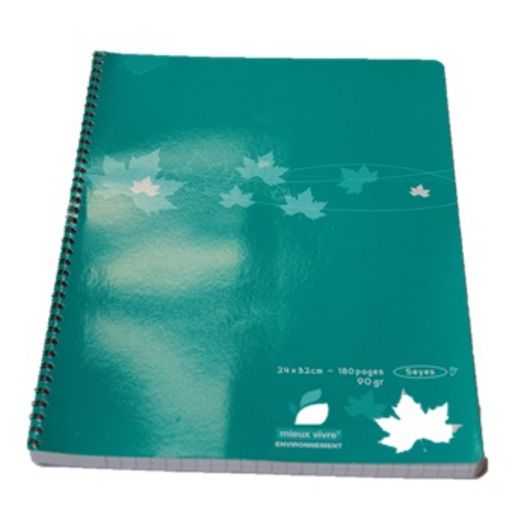 Cahier 24x32cm à spirale. 180 pages. 90g. Grands carreaux. Coloris turquoise.
