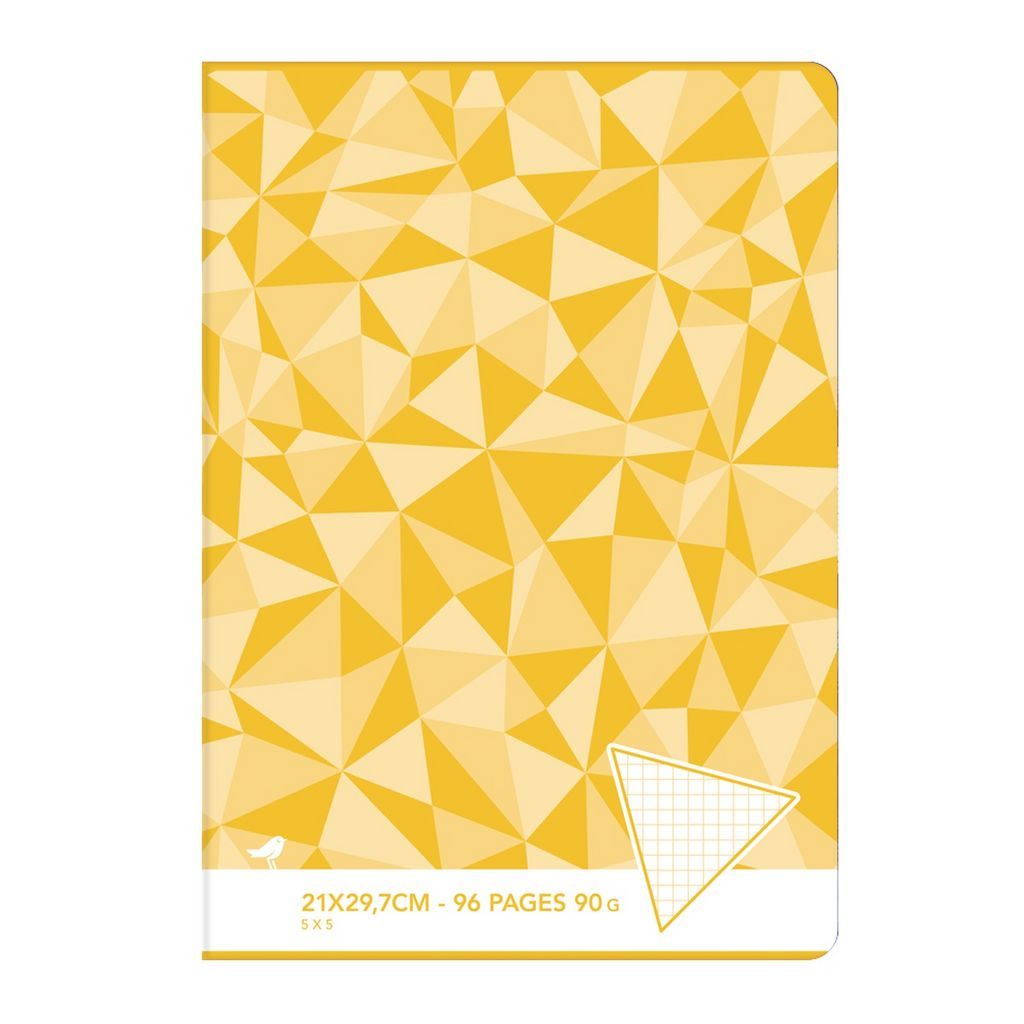 Cahier piqué 21x29,7cm 96 pages petits carreaux 5x5 coloris aléatoire motif triangles
