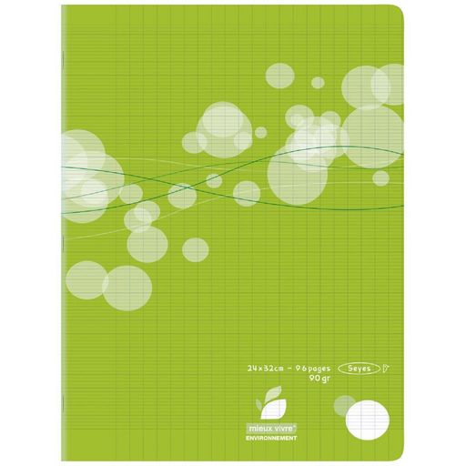 Cahier piqué polypro 24x32cm 96 pages grands carreaux Seyes vert motif ronds