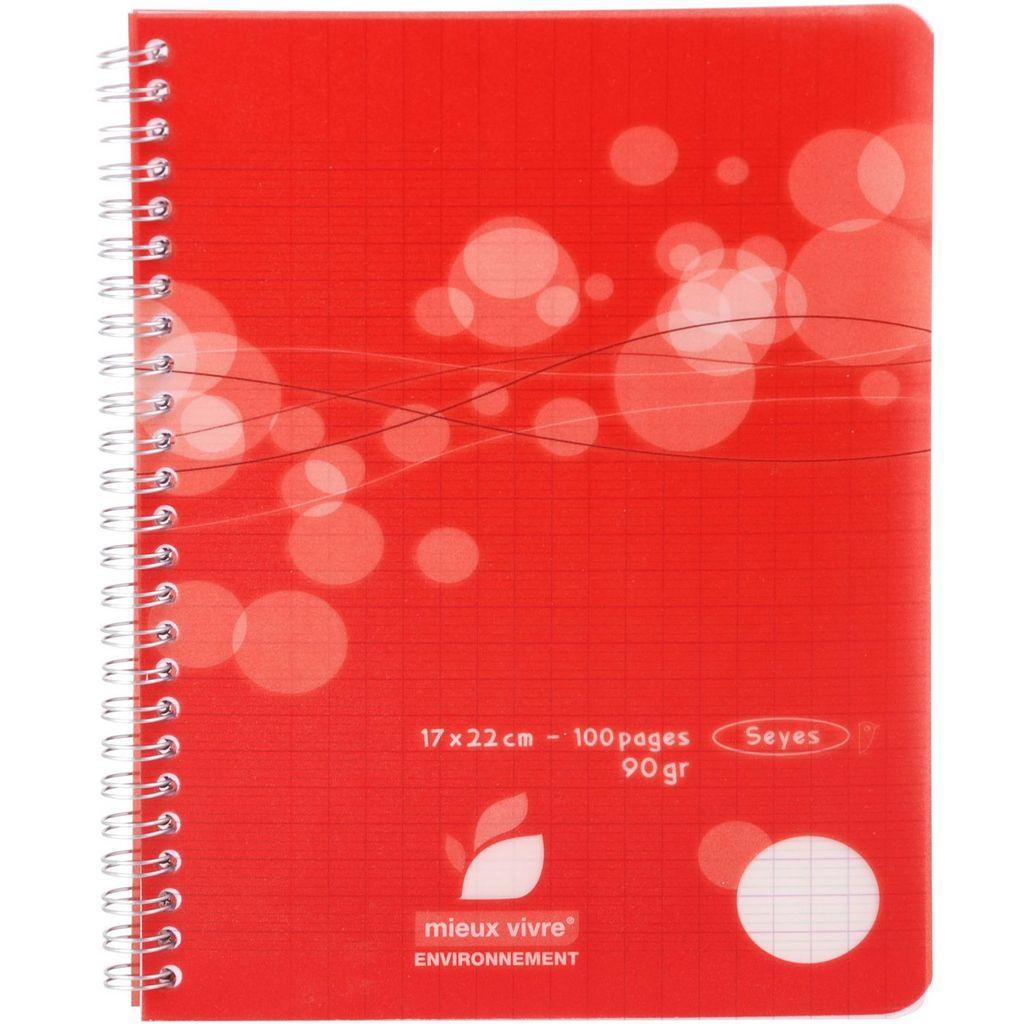 La vie vous sera simplifiée dans la prise de note avec ce cahier polypro 17x22cm 100 pages grands carreaux Seyes à spirale rouge motif ronds