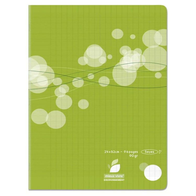 Cahier polypro vert 24x32cm 96 pages grands carreaux Seyes 90G