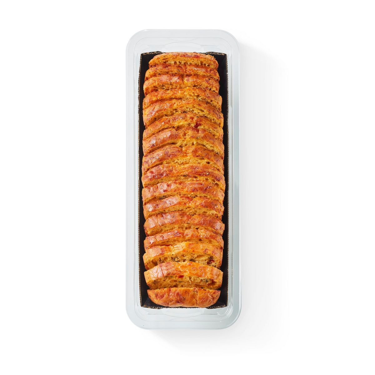SAVOUREUX : un cake cuisiné aux poivrons, tomates et oignons, relevé de persil et de piment.